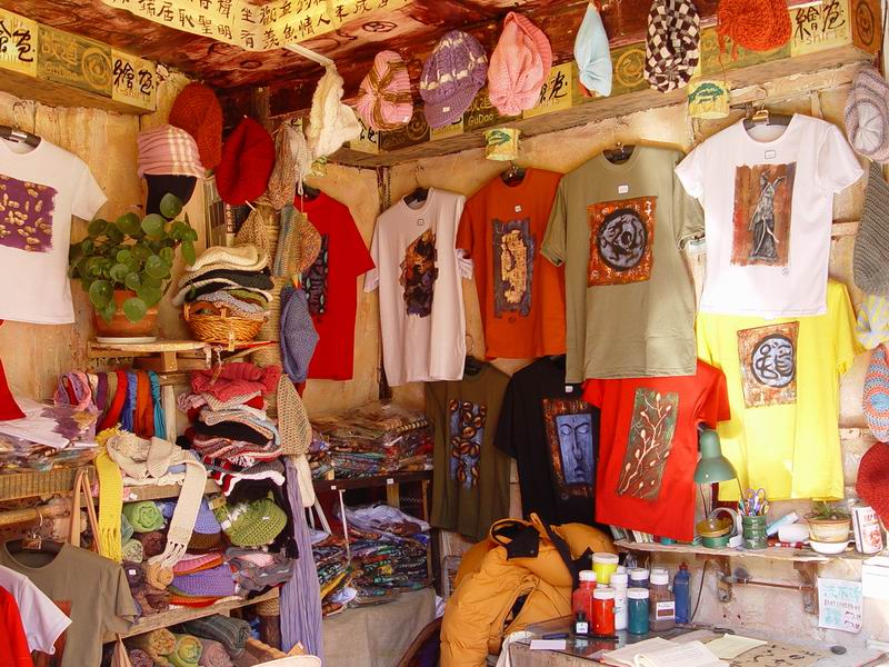 这家店虽然不卖手绘衫,但店主对色彩的感觉还不错,远远看去,花花绿绿,很养眼,我这个喜欢色彩的人禁不住停下脚步张望