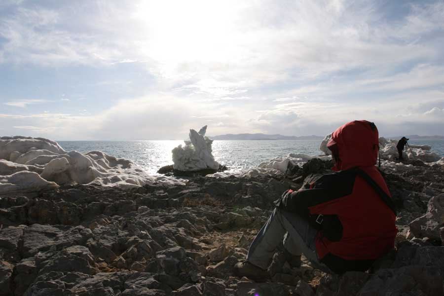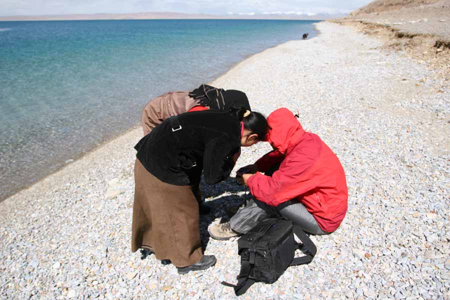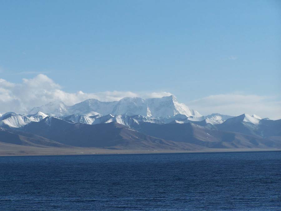 在湖边,在不同的角度,拍的神山念青唐古拉与圣湖纳木错。