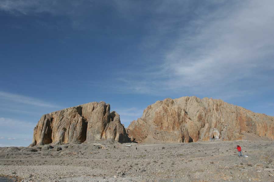 天色是越来越暗了,为了不影响伙伴们吃晚餐的时间,我和小熊MM赶紧向回走。可走了一会儿后,却发现在山崖下竟然有一个小小的房子,但只有一而墙露出山崖外,其它的部分好像都在在山崖体内,于是好奇的走了过去。到了门口后,高声向里面喊“有人吗”。不一会儿出来了一个中年的藏族阿妈,衣服的颜色很是艳丽,衬着那被高原阳光晒得红红的脸膛,让人感觉很是亲切。她把我们引了进去后,才发现,这个房子果然是除了我们刚见过的那面墙外,其它三面都是利用原有的山体。里面的空间很大,供奉着很多佛像,还有一个老年的女尼在里面坐着,见到我们后,用手一一指点着每一个佛像向我们说着什么,可惜都没听懂,除了在她指着一个蓝面骑龙的佛像时说的“NAMTSO”,由此估计,这里面可能供奉的是纳木错神,因为纳木错的全称就是“纳木错秋莫多吉贡扎玛”,是一个庇佑苍生的龙女。