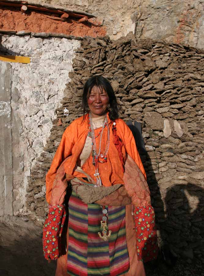 由于语言交流不通,也就没有在佛堂里呆很久,跑到外面的一个小小的休息间坐了下来,我们已走了一下午,并且又是爬上爬下的,有些累了,刚好可以在这里休息一下。藏族阿妈早已把香浓的酥油茶煮好了,并且还给我们拿了一小篓用酥油炸过的面食,看起来样子不是很诱人,但吃起来甜甜的,很好吃。由于无法交流,我和小熊也不知该怎样说及该说些什么,就是不断地重复着我们唯一会说的一句藏语“突吉其”(“谢谢”的意思,是我们转岗仁波钦时小洛桑教我们的)。临别时,阿妈把我们送到门口,金色的夕阳刚好照到她的脸上,很美很美。我不禁把相机举了起来,阿妈微笑着向我点了点头,于是,我最爱的这一张人像PP就留了下来。