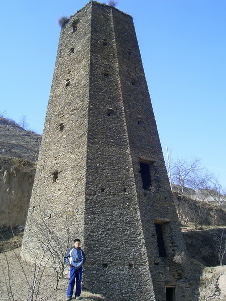 在四川甘孜藏族自治州丹巴县境内的革什扎乡大寨村一个名叫安安的地方的一陡崖边,曾经有一座废弃的三角碉楼,该碉楼横剖面为等边三角形,边长约10米,边墙略为内敛而呈弧形,残高约6米,目前该碉楼已毁。