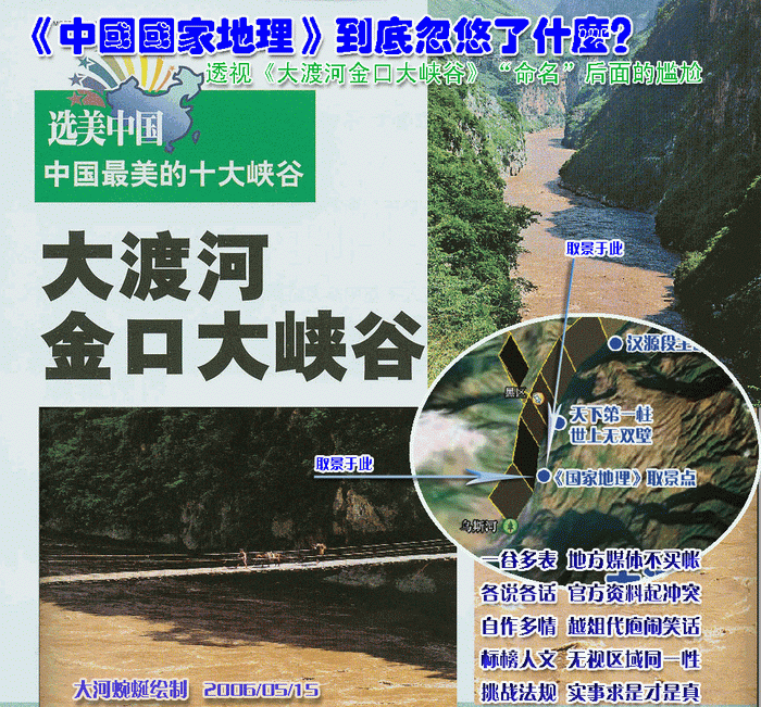 大河蜿蜒同志花这么多精力去琢磨金口峡的命名,倒不如花更多的精力,去想想大渡河在滥建水电的情况下所遭受的空前危机,想想我们能为保护景观、环境以及老百姓的土地能做些什么。