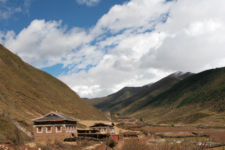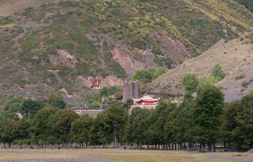 到了99K后,先把肚子搞定,期间有几个人问俺是否要坐摩托车或骑马去上木居,俺想还是发挥驴子本色吧,走!一路的景色还不错,由于时间上也不着急(原计划当晚能到达六巴就成),走的很慢,并且这一段路也还算好走,估计一般的小汽车应该是可以开进来的。还没到六巴乡(估计自己也就走了有7、8公里的样子),对面过来一辆摩托车,“坐不坐摩托车”,当时是真的有些累了,给自己找了一个冠冕堂皇的借口——第二天还要爬山,马上就妥协了(BS自己一次),“到上木居多少钱”,#%*¥(*—·(……*……,一番讨价还价后,达成协议——¥50,并且在后来的路上,这个藏民又问了问我当晚在哪里住,如果没地方住可以到他家住,¥20/天,包吃包住,听起来还真不错,同意。