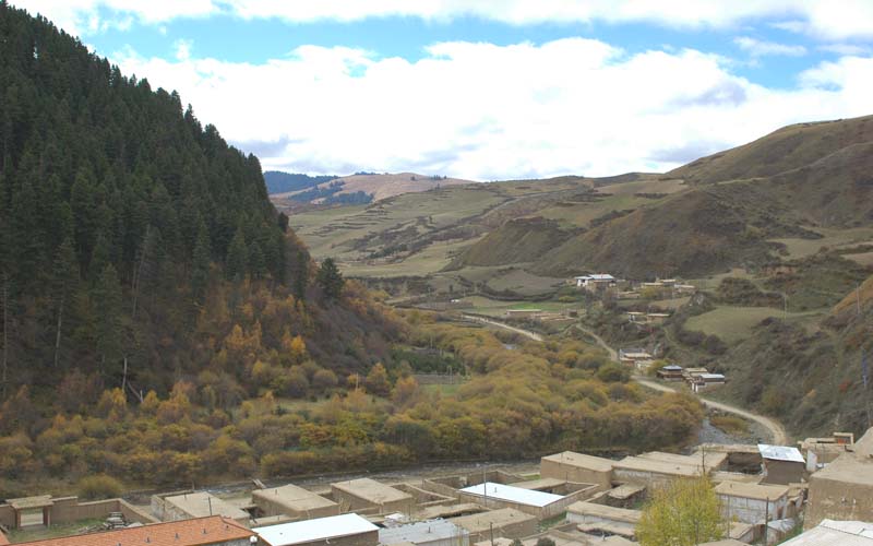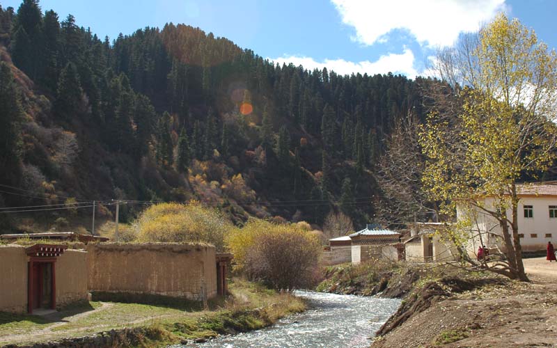 我们这次出行的主要目的是参加扎嘎寺新经堂开光典礼。从阿坝县城出发,经过一个多小时的颠簸跋涉终于走进了神座。这个名叫神座村的小村落位于热曲河下游,阿坝县最古老的藏传佛教寺庙扎噶寺就在村子对面的深沟里。这里是一个完全原生态的世界。村子的背面是广袤的高山牧场,一条名叫热曲的小河从村前蜿蜒流过,对岸是茂密的原始森林。阿坝人常说:"神座的姑娘、然木多的酸菜、蒙古的糌粑",使这块神奇的土地赋予了梦幻般的色彩。这里地貌特征多样化:起伏绵延的高山草原、茫茫的沼泽湿地、荆棘丛生的原始灌木林、茂密的原始森林......赋予了这块土地“川西高原生态活化石”的美名。
