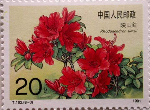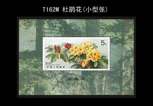 1991年6月25日,为展现中华大地珍贵的植物资源,中华人民共和国邮电部在发行T·162《杜鹃花》特种邮票的同时,发行了这枚小型张。