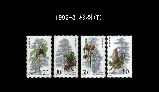1992年3月10日,正值中国植树节之际,为了增强人们的环境保护意识,中华人民共和国邮电部发行一套《杉树(T)》特种邮票,全套4枚。