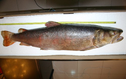 (2005年1月15日,青海省农牧厅水产局的工作人员在测量新近发现的“猫鱼”。)