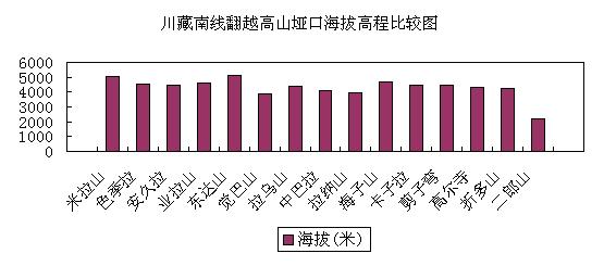 折多山至巴塘一线海拔4000米左右,由东往西有剪子弯山、高尔寺山和海子山等平缓高山。理塘是此线重要的分路点,往北可抵新龙和甘孜,往南则抵稻城、乡城和得荣等地。宽阔平坦的理塘地处毛垭大草原,是此线平均海拔最高的县,其县城号称“世界高城”。巴塘往西逐渐进入金沙江东岸谷地,地宽而略低,是藏族传统的优良农区。 过竹巴笼金沙江大桥后,川藏线进入著名的南北纵向横段山脉三山三江地带。公路由此进入了长达800余公里的,呈不断上升的“漕沟状地质破碎路段”。 在西藏波密至排隆间,雨季盛行时,肆虐的泥石流及山体滑坡令大地几成“蠕动状”,其威力足以使车行此地的人惊心动魄,直至翻过西藏林芝县境内的色季拉山口。此线有盘不完的山,淌不完的河。川藏线上几乎所有的天险都集中在这一段。色季拉山口后特别是林芝后,全为一级公路,直到拉萨。 |