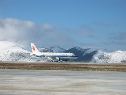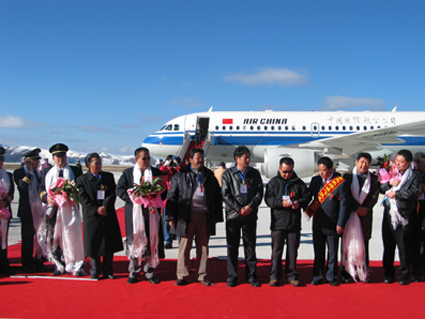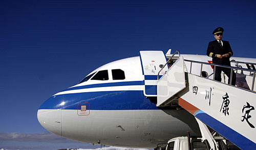 2007年10月28日上午9时05分,国航西南分公司一架空客A319高原飞机,平稳地降落在四川甘孜藏族自治州康定机场。这座被雪山环绕的机场海拔4280米,仅次于世界海拔最高的西藏昌都邦达机场(4334米)。这架飞机的到来,结束了甘孜州没有民用航空的历史。