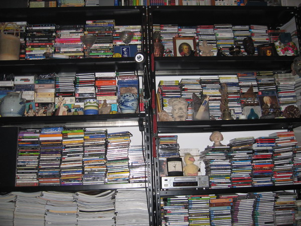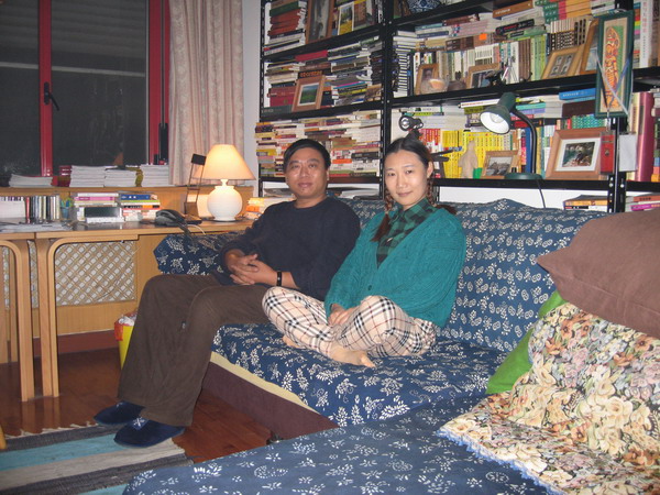 李的家也别有风格,像一间很有格调的酒吧。蓝印花布铺就的沙发,从世界各地淘来的宝贝,他拍摄的作品,堆成山的书、画册。而最多的却是碟,无论是音乐的还是电影的,档次都很高,简直让人流口水。坐在他家的感觉舒服极了。
