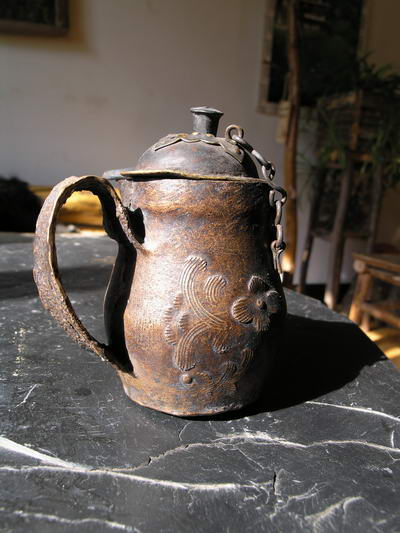 都是应该是文物哦。第5张图片好象不是“牛角水壶”,应该是藏区猎人装火药用的牛角器具。
