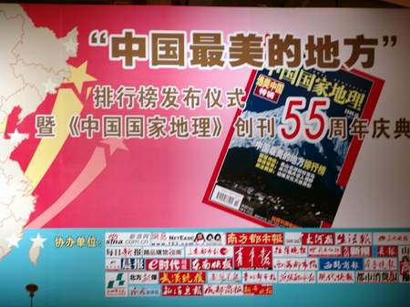 “中国最美的地方”颁奖仪式在北京举行 2005年10月23日下午5时,“‘中国最美的地方’排行榜发布仪式暨《中国国家地理》杂志社成立55周年庆典酒会”将在北京隆重召开。来自全国主流媒体的总编辑与常年支持这本刊物的院士、专家、作者、读者、广告商、发行商,以及来自“最美”地方的代表500多人汇聚一堂,为《中国国家地理》、为“中国最美的地方”喝彩。