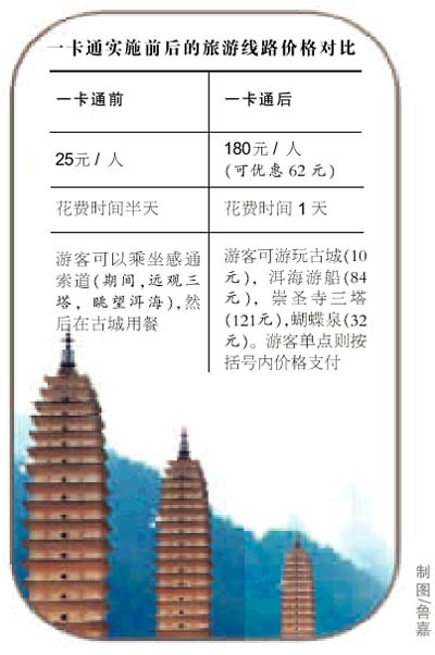 云南省旅游局局长罗明义此前接受媒体采访时称,“一卡通”是旅游业走向规范和成熟之前的过渡性产物。