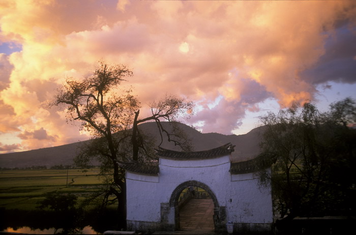 我是在九十年代末,独自一人经过一路艰苦的旅途,先是到达历史文化名城腾冲,这座被史学家称之为“西南极边之地”的地方,给我留下印象是极其失望与悲哀,这座辉煌灿烂的古城,曾在30年代因商贸繁荣而达到它的鼎盛时期。然而,在抗战时期,它落入日寇手中,1944年8月,中国远征军为了夺回古城与日寇激战了49天,最终,古城是收复了,但拥有几百年历史的古城经过战争的洗礼成了一片废墟,砖块瓦砾下是上万名牺牲军人的尸骸,我曾经到国殇纪念塔去瞻仰那些先烈们,也在古城里四处游荡与寻觅,我希望能够找寻到昔日古城曾辉煌的一点印记,但一切皆白费功夫。而后,当我来到距县城4公里远的和顺乡,所有的一切辛苦都被眼前所见到的美景抛到九霄云外了,我终于找到了这个让我梦牵魂绕的地方。