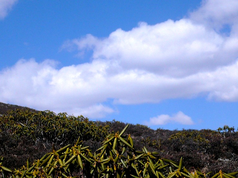 难怪这里是训练高山向导的基地, 因为它是对耐力和判断力的一个考验, 我一口气上爬了三个小时, 而前面的高坡却不断向上延伸, 似乎永远没有尽头, 把前面山与天空交接的那条直线当作山顶显然是错误的判断, 那条线总是随着你的上攀往上移动, 你一上去, 它又到了前面, 更糟糕的是, 上面还有一些高峰, 在下面看不见, 上来了才见到它挡在了你的面前。我不用报名考试就自己来给自己训练一番, 而且不用受到教练的虐待,虽然冷清一点,但还是有几分自在。可惜虫草还没有长出来,要不然弄几根补一补没吃早饭的身体,百分之百的吸收了,晚上一定有劲没地方使!