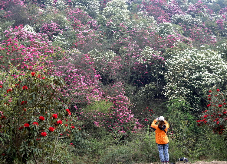 (图为友多在贵州杜鹃花海考察)