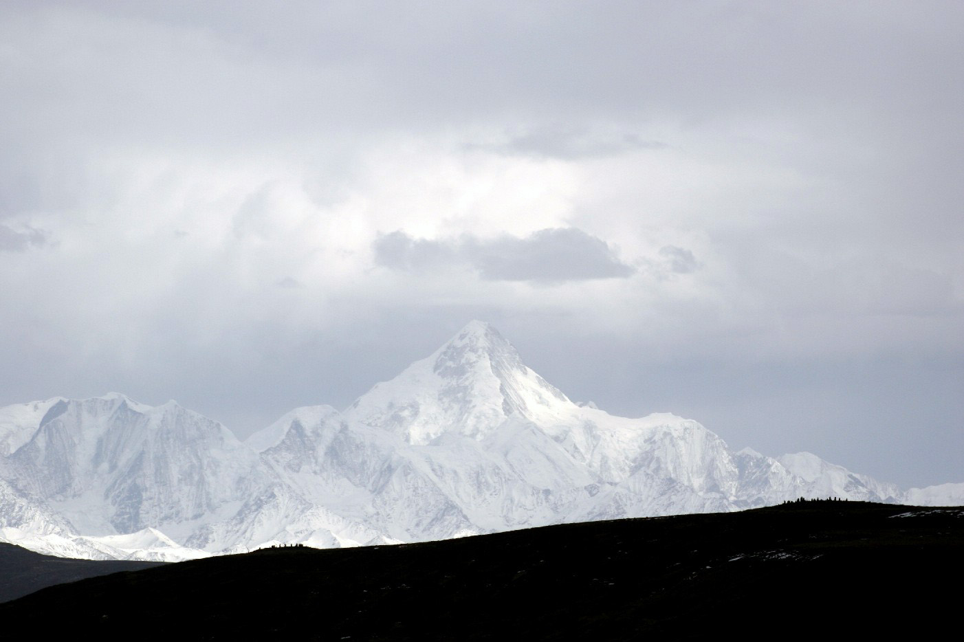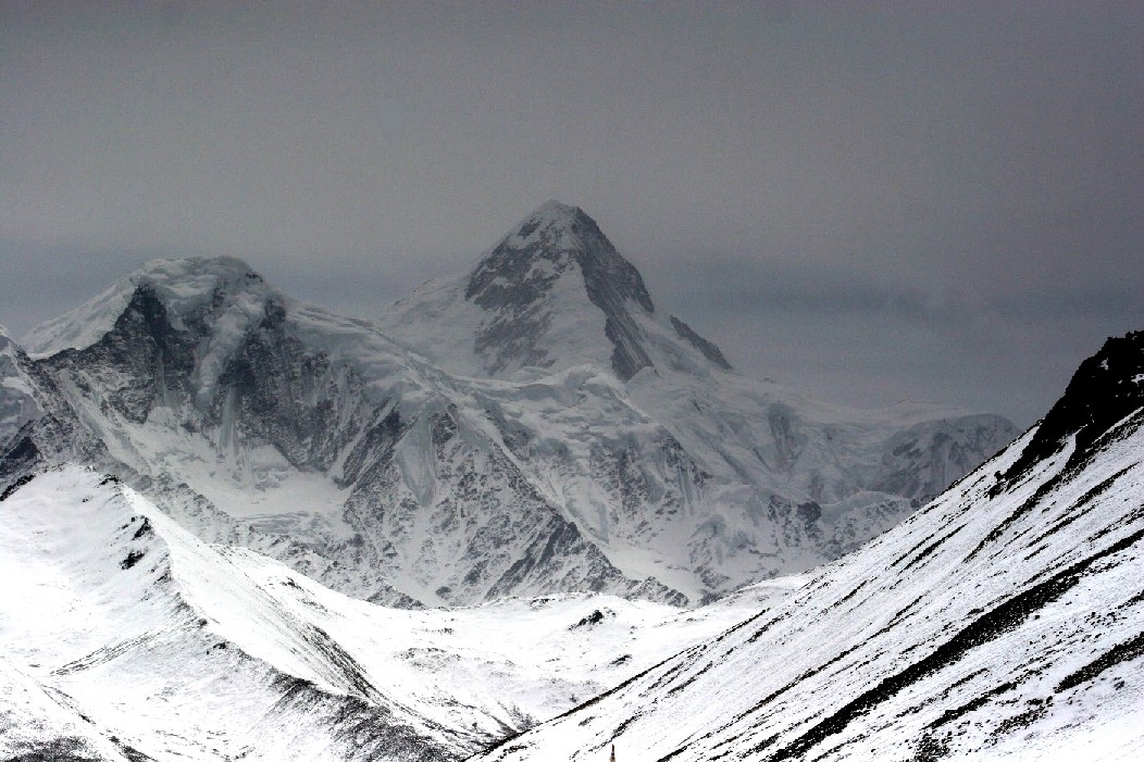 在丫口的那一边, 贡嘎雪山主峰巍然屹立, 它斯文不动, 怒号的狂风, 翻卷的白云, 飞扑而来的雪粒, 使神山更具英姿, 更显风采, 白茫茫的雪山啊, 我真的是没有办法看个够, 他近在咫尺, 但却仍然遥不可及。我就算站在了他的面前, 他仍然还是那般永恒的遥远和高大莫测, 我的照相机无论怎样搬弄, 他总是以黑白两色出现, 如此清晰的雪山本色, 不管是风和日丽, 还是狂风暴雪, 它们对雪山的本质不起任何作用, 在任何情况下, 他都一样美丽, 永远壮观!