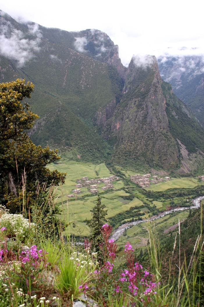 盛开的达玛花俯瞰村庄, 在悬崖绝壁上顶风冒雨, 装扮这片神奇的山河。