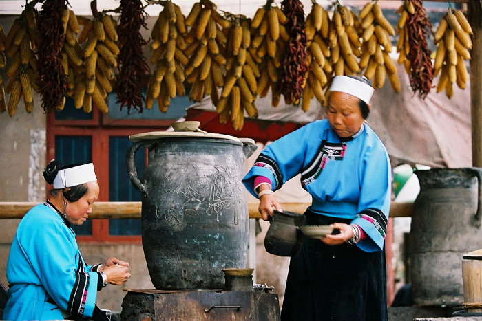 确实,在我们所走过的屯堡村寨,除了云峰八寨的少数老年妇女,其余村寨的老人都保持着天足。对此,王厚福说:“主要是职业不同,云鹫山那边大多是生意人,不做农活,加上清朝以后受到外来习俗的影响,也就包了小脚。”