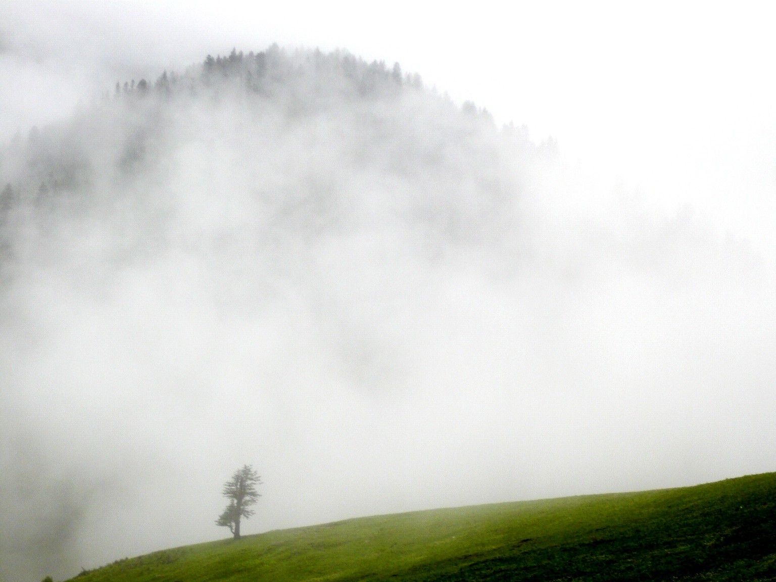 清晨, 迷雾从河沟里升起, 它们在稀疏的森林里填补了那些被砍伐的树木的空间, 它们在空荡荡的山岗里穿行, 哪些幸存的树木孤零零地站立在山间, 失去了同伴的陪伴和簇拥, 它们势单力薄, 孤独无声, 向着苍天述说着什么, 但是无人知道它们的语言, 无人知道它们的忧伤, 它们的年轮仍然心惊胆战中慢慢生长, 但是这失去伙伴的年华,失去了群体的孤独, 在这遥远的深山沟里, 似乎变得枯燥无味和格外的漫长。