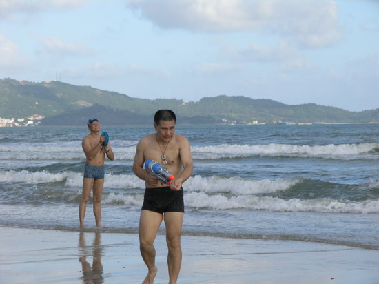 快乐母亲的老公,快乐儿子的老爹,我们大家的茶官儿(前)。周末海滩游的领队(后)。