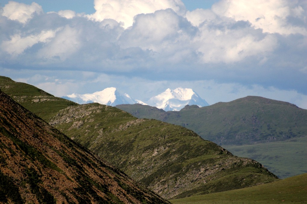我们骑着马继续朝着山里进发, 卓嘎拉开帐篷的门, 悄悄地看着我们离开, 她那黑色的眼睛, 像是述说着一种告别和再见的语言, 我们上了山, 回过头来, 她的身影消失在帐篷里, 一片白云从丫口上飘下来, 露出了东北方向新龙境内的卡瓦洛日神山, 洁白的雪峰, 在白云下闪耀着晶莹的白色光芒。这是一个多么宁静和安详的下午!