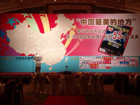 “中国最美的地方”颁奖仪式在北京举行 2005年10月23日下午5时,“‘中国最美的地方’排行榜发布仪式暨《中国国家地理》杂志社成立55周年庆典酒会”将在北京隆重召开。来自全国主流媒体的总编辑与常年支持这本刊物的院士、专家、作者、读者、广告商、发行商,以及来自“最美”地方的代表500多人汇聚一堂,为《中国国家地理》、为“中国最美的地方”喝彩。