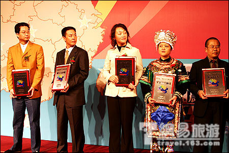 领奖嘉宾:丹巴县人民政府县长刘英;云南生活新报副总编胡荣华;新疆喀纳斯景区管理处科长赵玉霞;贵州省黎平县旅游局副局长刘康琼;江西都市消费报常务副总编朱华祥;云南省丽江旅游局局长和春雷。 颁奖嘉宾:中国建筑设计研究院副院长总建筑师崔恺;TCL副总裁杨伟强先生。