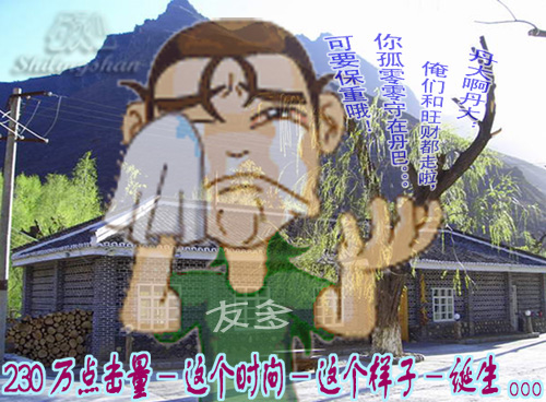 你是到我们故乡来体验生活的,还在离开是这样念念不忘在这个美丽的地方离下的美丽的记忆,你是个多情的人,也是个重情的人,我们丹巴人最珍贵的你学到了.是你一生的财富,也是你一生美好的回忆.二十一年前,我和三十一个战友(一个女兵),戴着大红花,在亲人的期待,恋人的热泪,对故乡依依不舍的倦恋中离别了故乡.那时候南国正燃起烽火,我们所奔赴的方向也正是此地,所以离开亲人的故乡就有一种生离死别的感觉,在征途上,我们沿着过小金川河,翻过巴朗山,坐了五天六夜的火车,第一次走出大山,虽然外面的世界很精彩,但是我们无心看那些精彩的世界,我们都沉浸在离乡的愁云中,但是在记意中还记得那条灰尘迷漫,坎坷不平的山路,让我们这些初出远门的还是娃娃们的新兵差点出未捷身先死,肚里的一点早餐都早已吐得干干净净了.这可是比战场上受伤还难受的一段时间呢.十来年了,再回故乡,正是丹巴开始开发的时间,修成的四通丹巴境内的路,感觉是比在高速路上和机场路行车还要舒适,也许是心情的原因吧,现在在回来从成都一天安全,轻松的大半天就到家了,感觉真是好呀,也感觉到故乡在真的变化呢. |