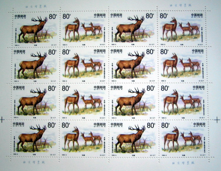 3、麋鹿(Elaphurusdavidianus)偶蹄目,鹿科。俗称“四不像”:头似马、角似鹿、蹄似牛、尾似驴,但从整体上看,一无所像,故称四不像。体长2米余,肩高可达1.3米毛色淡褐,背部较浓,腹部较浅。雄鹿有角,多回两叉分歧。尾长,下垂至脚髁,可达65厘米,是鹿科动物中最长的,末端生有丛毛。性温驯,以植物为食。麋鹿是我国的特产动物,也是一种最富传奇色彩的动物。远古时代,它们曾广泛分布于我国东部广大地区,由于栖息地属人类农耕区,故野外种群早已绝迹,而成为一种人工饲养的动物。到1865年时只剩仅有一群麋鹿生活在北京皇家猎苑——南海子猎苑。法国戴维神父于1865年在此发现了麋鹿,并于次年设法盗买运到法国巴黎,经鉴定为新属新种。清末战乱及水灾将猎苑完全破坏,苑内麋鹿则被饥民猎杀干净。此前,侥幸有一些被运往欧洲,中国国内麋鹿绝迹后,欧洲(主要是英国)人工饲养的麋鹿群却不断壮大。1985年以后,通过国外友好人士帮助,我国先后分批引回80余头,饲养在北京南郊南海子、江苏大丰县及湖北省石首市。如今,这些重返故里的麋鹿生息繁衍,数量不断增加,现已达千余头。麋鹿模式标本采集地为北京南海子,北京市丰台区东高地邮政局(100076)。江苏省大丰自然保护区坐落在黄海之滨的大丰县林场南端(大丰县224100)。