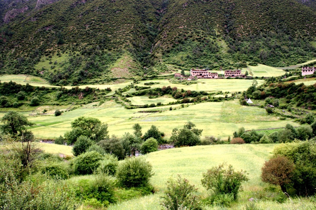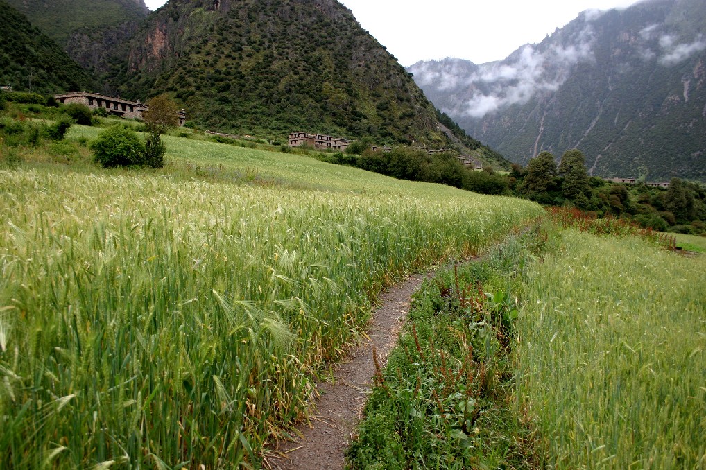 青稞地直抵大门, 风景之外的辛劳可想而知。