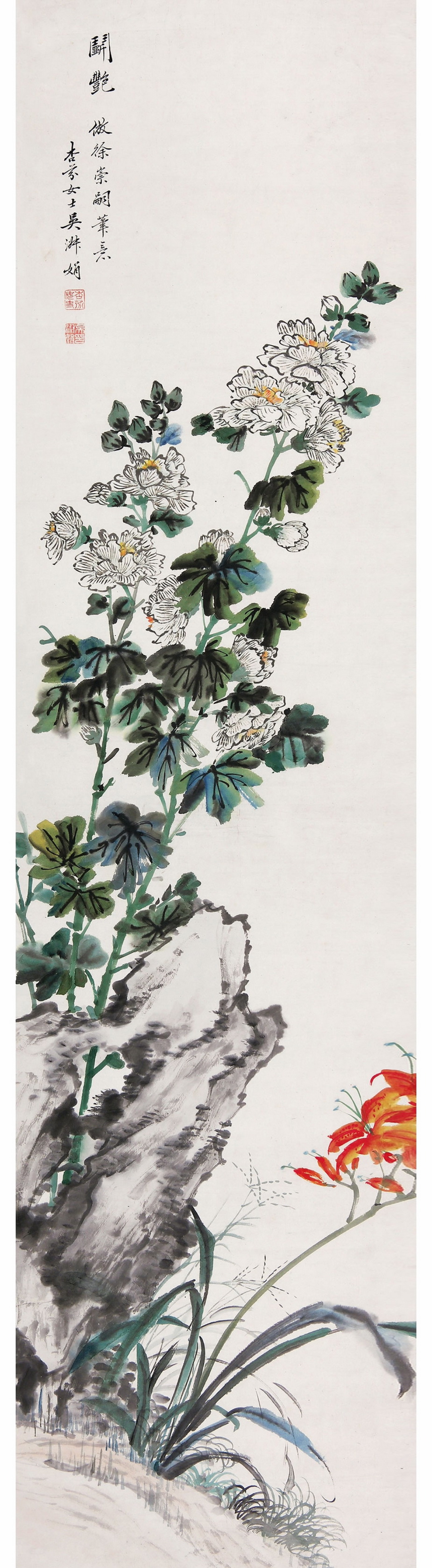 中国女画家笔下的蜀葵花 吴淑娟《蜀葵花》