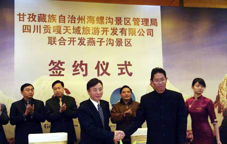 2007年4月19曰,中国农业银行甘孜州分行行长侯仕鑫与与四川贡嘎天域旅游开发有限公司(外商独资企业)董事长苏启声在成都签署了《银企合作协议》。
