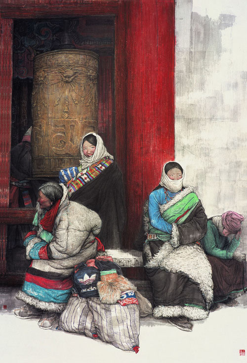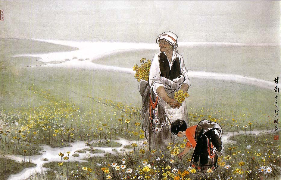 作者介绍: 刘大为,山东诸城人,1945年出生。1968年毕业于内蒙师大美术系,1980年毕业于中央美术学院中国画研究生班,。现任中国美术家协会中国画艺委会副主任、中国工笔重彩画学会副会长、解放军艺术学院美术系主任。主攻人物,工写皆精。受教于叶浅予、蒋兆和、李可染、吴作人、黄胄等中国著名画家,基本功扎实,并刻意求新,工、写皆精。在长期艺术创作实践中,逐渐形成个人鲜明的艺术风格。作品严谨深刻并富有浓烈的生活气息,作品以反映北方少数民族生活风情以及重大历史题材著称于世。近几十年来,大量作品在中国及美国、日本、法国、新加坡、香港、澳门、台湾等地展出,获奖三十多次,是获奖最多的画家之一。是中国当前艺术成就突出,影响较大的国画家。作品《任重道远》被江泽民主席1992年访问日本时作为国家礼品赠送给日本领导人;《打马球》获奥林匹克美展奖并为国际奥委会主席萨马兰奇收藏,曾率中国美术团访问美国、日本、西班牙等国家。现为中国美术家协会常务副主席,中国美术家协会书记,主持中国美术家协会工作。 主要作品《漠上》、《马背上的民族》、《阳光下》、《晚风》、《帕米乐婚礼》、《草原上的歌》等。《小骑手》获第二届全国连环画展二等奖;《华山救险》获《光明日报》美术奖一等奖;《高原金秋》获首届工笔重彩大展一等奖;《阳光下》获第七届全国美展铜奖;《马背上的民族》获第二届工笔重彩大展一等奖;《晚风》获1991年全国美展银奖和关山月中国画创作奖.