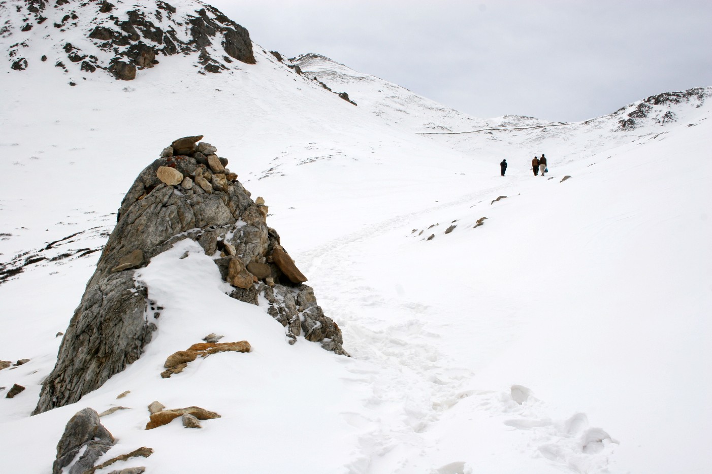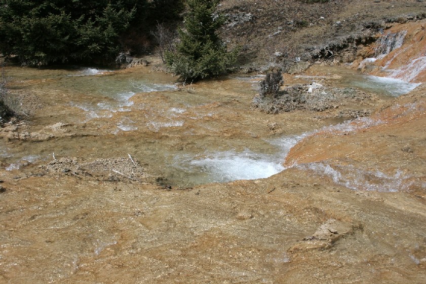 接近高山丫口, 钙化滩上覆盖着深雪。