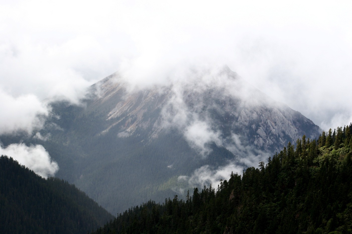 在米拉山的丫口上, 我们被对面掩藏着迷雾之中的盖玉方向的一座大山的苍劲和荒蛮所震撼, 这就是叶巴所在的, 海拔5074米的娘夏卓山, 可惜照相机没有能够拍出那种效果来, 更令人惊奇的是, 回来仔细看了长镜头拍的照片才发现的, 原来这两座山的主峰都是近代的火山口, 从峰顶流出的溶岩表层的光洁度来判断, 这两个火山口最多不过数百年的历史, 不过这两个火山口喷发时的力度有限, 溶岩流到半山腰就停止了, 但无论如何, 这似乎是此次进山的一个新的发现(如果别人还没有发现的话), 90年代出版的白玉县志上并没有提到这两个火山口。