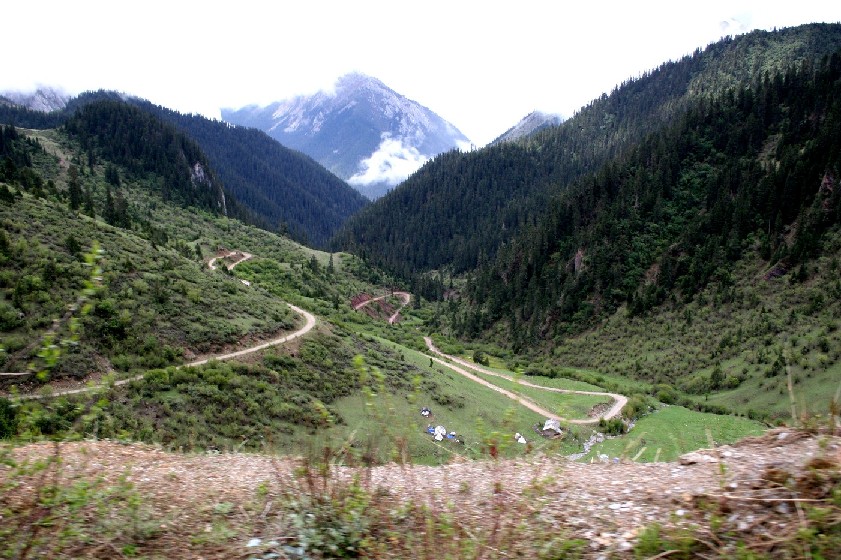 车在山路上跳跃前行, 溅起大量的泥水遮挡了车窗, 洛嘎不愧是个好手, 一边轻松地开车, 一边大声地给我们摆着这里的情况, 一边大骂修路的人把路整得稀烂, 他告诉我们, 修白巴路的两个老板已经带着人进来了, 一个负责白玉段, 一个负责巴塘段, 明年这条路一但修好, 来白玉就再也没有人愿意走甘白路了, 白巴路贯穿降曲峡谷, 连接米拉山和巴塘措普沟, 在巴塘的措拉与国道318相接, 路程少了许多不说, 这一路的风景就不摆了(四川话, 不摆了就是不用说的意思) 。