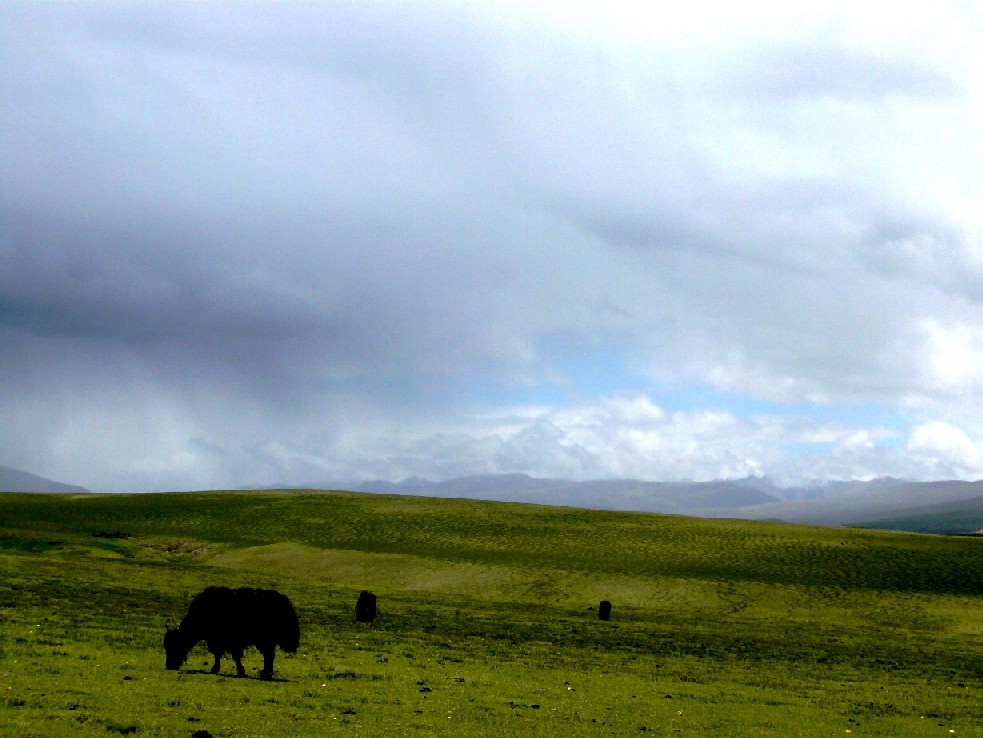 如果不是在傍晚的雨后到达亚青柯, 你就不会见到黄昏时亚青柯高原那种梦幻般的天空和云层, 那是一种无法形容的圣洁之光和色彩, 沐浴在那样的光芒里遥望前面亚青寺那几千座喇嘛觉姆住的小屋里冒起来的炊烟, 真是想不到人间烟火居然可以以这样的方式在这雪山俯瞰的高原上存在。只要看一眼那种光芒和颜色, 你就可以立即感受到, 这是一个精神的世界, 物质的简陋恰恰可以衬托出精神的富有, 而遥远的感觉反而使人觉得可以近距离领会一种新的未知。
