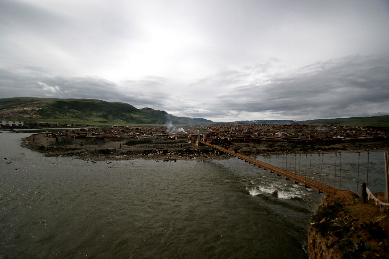 觉姆区靠山临河,由一座吊桥与喇嘛区相连!
