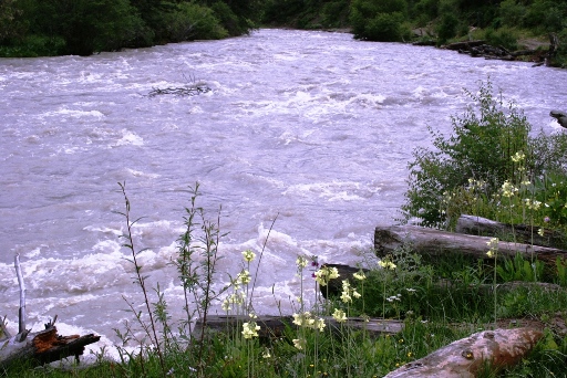 麻曲河水冲上了草坝,越过了围栏,淹没了花草。