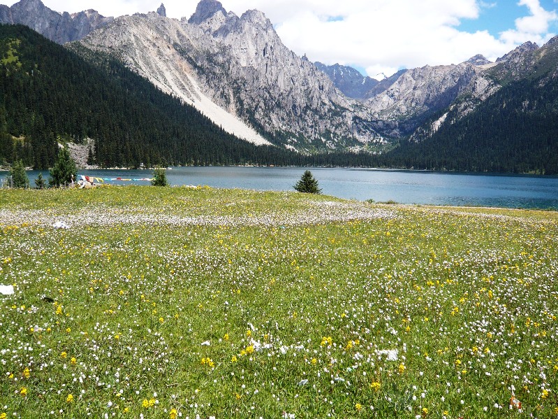 这里的措普沟,是川西最大的高山湖泊, 在这圣湖的境地里, 神鱼听得见人声, 温泉随歌声喷涌, 这里是金沙江畔的民间歌舞之乡, 阳光明媚的草地上, 湖边, 一群美丽的姑娘走过来, 跳起热烈柔美的巴塘弦子, 小伙子们拉着弦胡在前面引路, 目不转睛地盯着姑娘们的舞步, 一圈又一圈, 一曲又一曲, 一直跳到月亮升起, 在这里, 人们没有仙境的清规戒律, 只有人间的真挚爱情, 在这纯净的天地里, 他们的生活充满了活力和激情, 听听他们的歌声, 就知道这活力和激情已经融入了美丽的歌舞之中: